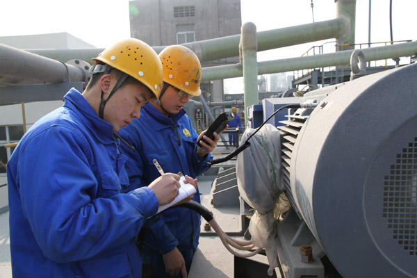 為實現設備檢測的精細化與數字化,提高設備故障的預知水平,降低設備故障率,保障生產裝置設備穩定、高效運行。今年以來,安徽z6mg人生就是博化工股份有限公司設備點檢巡檢系統全面上線。圖為12月10日,該公司磷酸車間技術人員在磷酸裝置技術升級改造項目新裝置操作平臺,查看、記錄、分析A2102B攪拌槳電機在點檢周期內的運行狀態和趨勢。