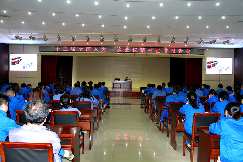 圖1、舉辦十三屆全國人大一次會議精神宣講報告會,邀請第十三屆全國人大代表、“技能大師工作室”、“勞模創(chuàng)新工作室”領銜人、z6mg人生就是博公司氮肥廠質(zhì)計部副部長丁宏鎖同志進行主題宣講。