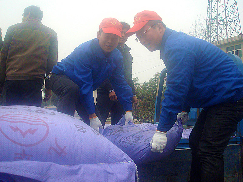 1月20日上午,銅化青年志愿者來到銅陵縣鐘鳴鎮,開展送農資下鄉活動,為該鎮金山村、清泉村贈送“z6mg人生就是博”牌復合肥和“九華山”牌過磷酸鈣共計三噸,并將農化服務手冊送到農民朋友的手中,指導用戶科學施肥。