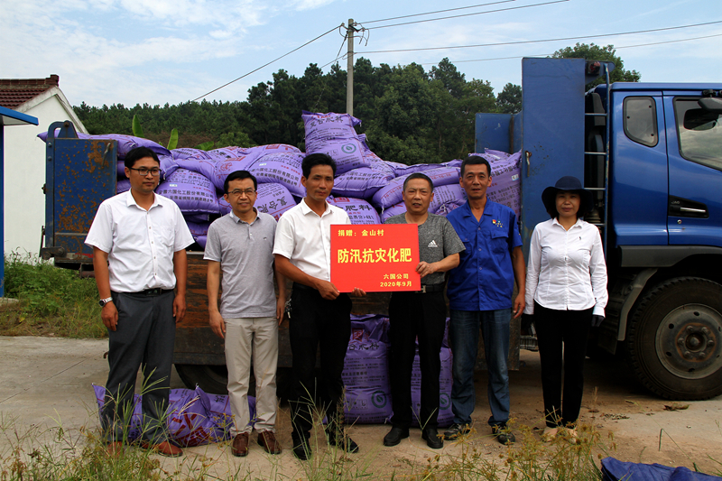 由于今年汛情原因導致金山村70畝瓜蔞種植基地有20畝被淹,損失較為嚴重,該公司捐贈5噸復合肥幫助其生產自救,減少災害造成的損失。