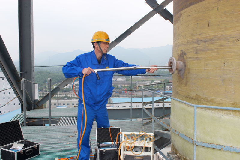圖一:環(huán)境監(jiān)測(cè)人員對(duì)車間尾氣進(jìn)行監(jiān)測(cè)